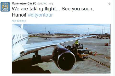 Man City gửi lời chào Hà Nội trên Twitter