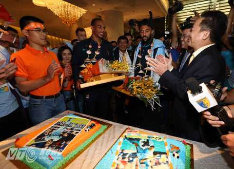 20h20': Bầu Hiển mừng sinh nhật 2 cầu thủ Man City ngay tại sảnh khách sạn.