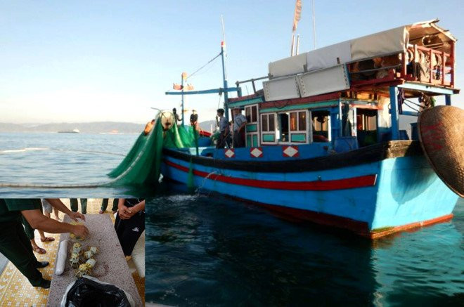 Theo thông tin ban đầu, khoảng 5h40 ngày 28/6, lực lượng Biên phòng Vĩnh Tân, thuộc Đồn Biên phòng Liên Hương, phối hợp với Trạm bảo vệ nguồn lợi thủy sản Tuy Phong, thuộc Chi cục bảo vệ nguồn lợi thủy sản Binh Thuận, tuần tra và phát hiện tàu cá Ninh Thuận có công suất 270 CV, đang khai thác thủy sản tại vùng biển Vĩnh Tân, có dấu hiệu khả nghi nên áp sát kiểm tra.