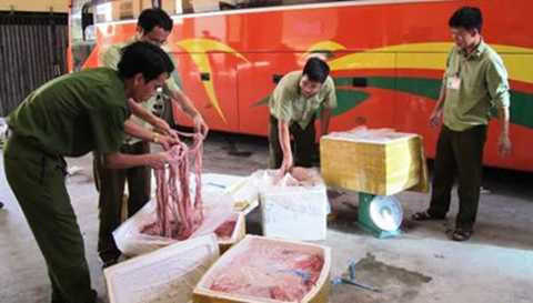 | Hơn 500kg lòng lợn thối vận chuyển từ Đà Nẵng ra Hà Nội tiêu thụ bị thu giữ và tiêu huỷ |
