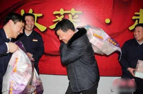 Tổng số tiền thưởng lên đến 11 triệu NDT (tương đương hơn 38 tỷ đồng) có nhân viên được thưởng đến gần 2 triệu NDT (7 tỷ đồng). Toàn bộ số tiền này được xếp thành một bức tường cao trên sân khấu để thủ quỹ chia cho các nhân viên.