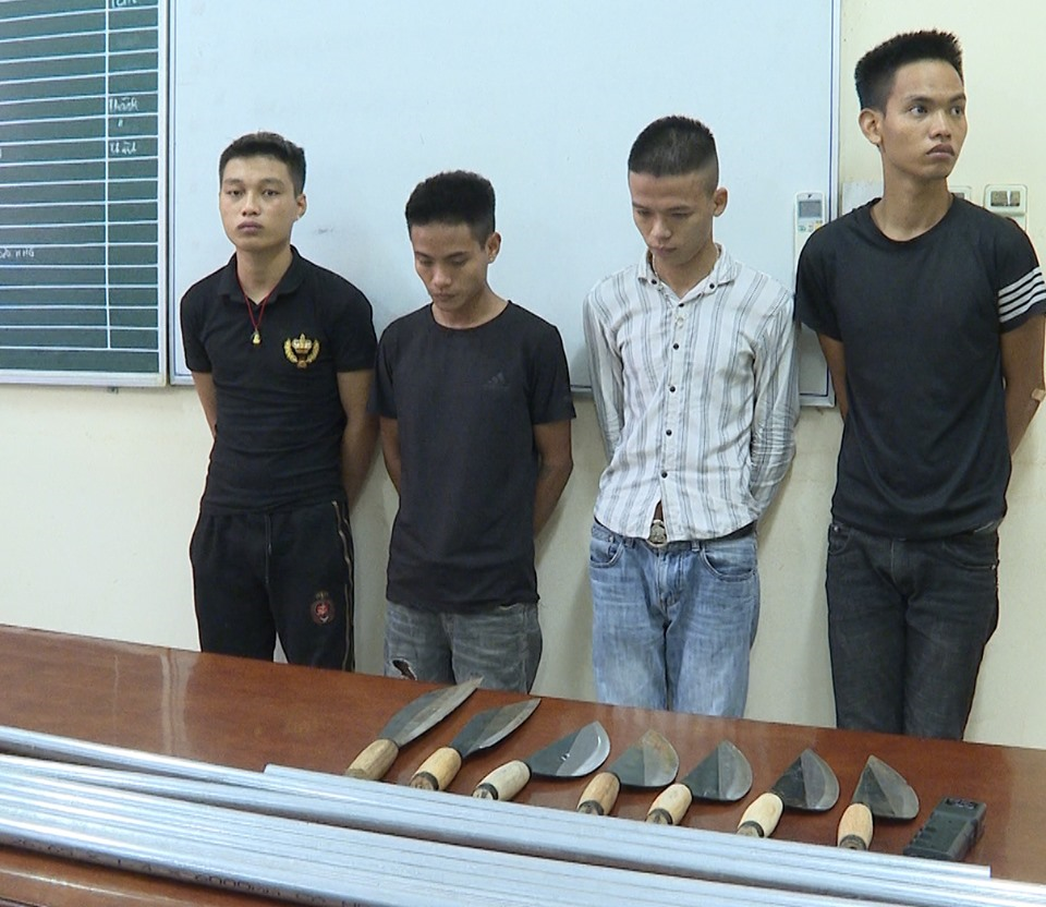 Các thanh niên bị bắt giữ gồm: Đỗ Ngọc Sơn (SN 1996), Đỗ Đức Hậu (SN 2001, đều trú tại xã Hanh Cù, huyện Thanh Ba, Phú Thọ); Hà Minh Quân (SN 1999, trú tại xã Đỗ Sơn, huyện Thanh Ba, tỉnh Phú Thọ) và Nguyễn Thế Công (SN 1999, trú tại xã Đồng Yên, huyện Bắc Quang, tỉnh Hà Giang).