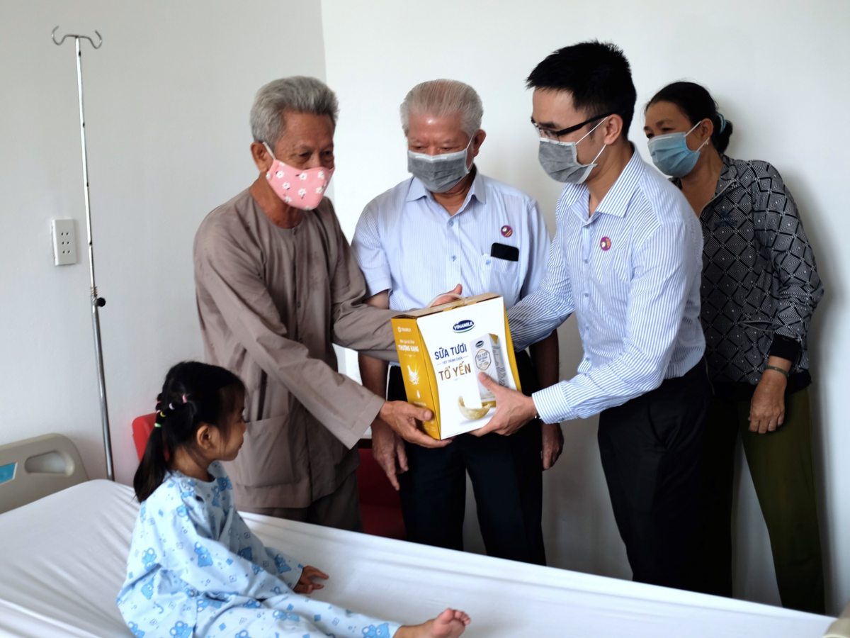 Đại diện Vinamilk trong một buổi đến thăm các bệnh nhi tại Viện tim Hà Nội.