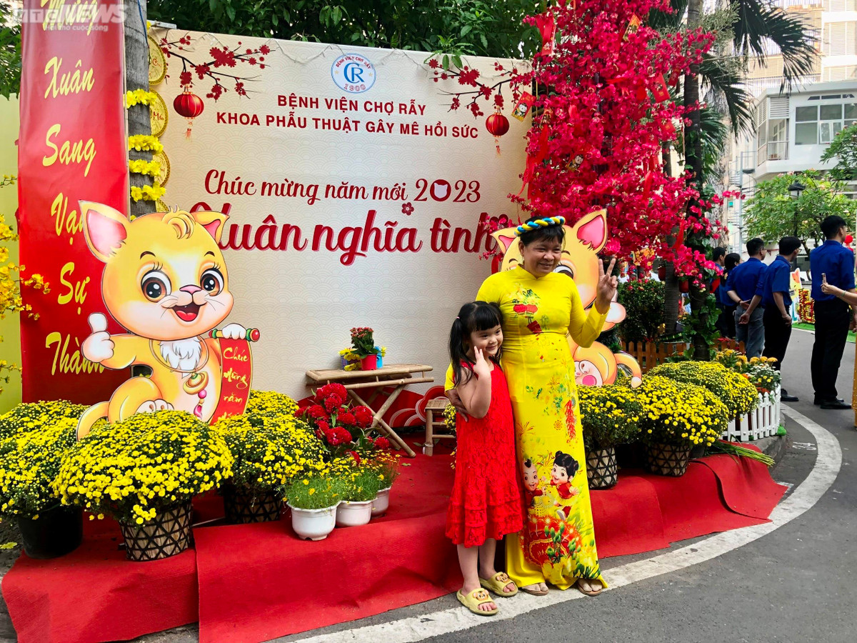 Tết đến, nhiều bệnh nhân nặng vẫn phải ở lại bệnh viện điều trị, vì thế các nhân viên y tế Bệnh viện Chợ Rẫy đã trang hoàng lối đi nội bộ thành cung đường hoa rực rỡ sắc xuân, mang đến niềm vui, giúp người bệnh cùng thân nhân vơi đi nỗi nhớ nhà.
