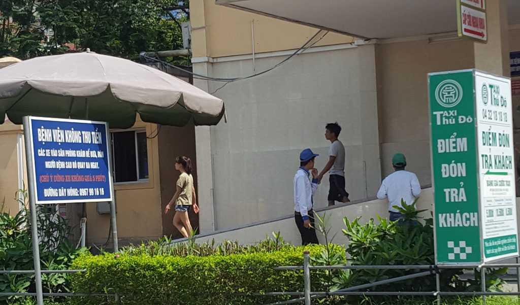 Một nhân viên điều hành chừng 50 tuổi của Hãng taxi Thủ Đô tại đây tiết lộ, công ty đã nộp tiền nên mới được đậu xe tại đây. Xe của các hãng khác không được phép đậu đón khách trước cổng chính BV này. Chỉ người ở trong BV gọi đặt xe qua tổng đài mới được vào đón nhưng phải nộp phí cho bảo vệ từ 20.000 - 30.000 đồng/lượt đón khách. Khi chở người vào BV thì không phải nộp phí nhưng khi có khách đón xe đi ra thì không được nhận chở.