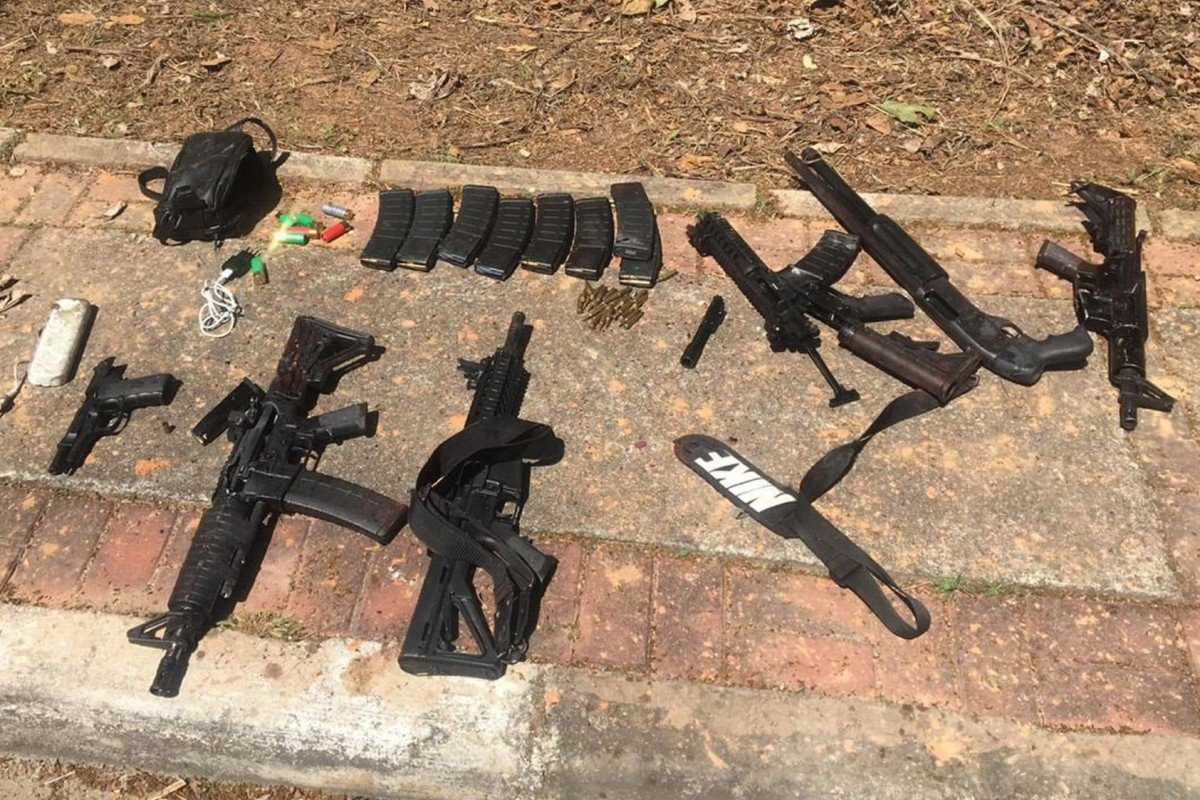 Số vũ khí mà nhóm người mang theo bị cảnh sát thu giữ. (Ảnh: EPA)