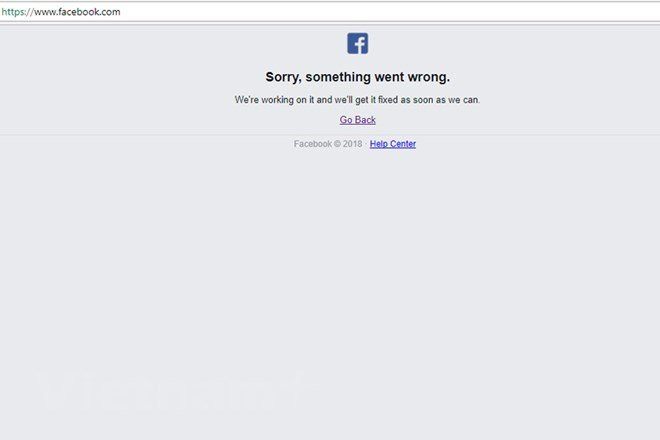 Giao diện của Facebook khi bị gián đoạn truy cập vào chiều muộn 22/2. (Ảnh chụp màn hình)