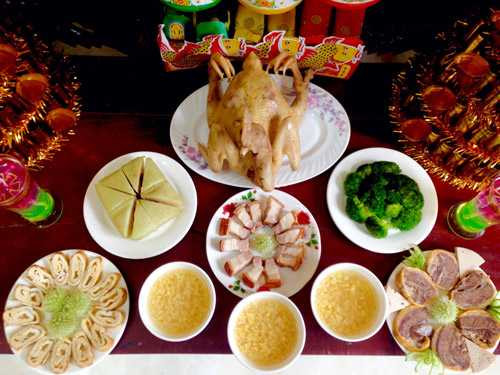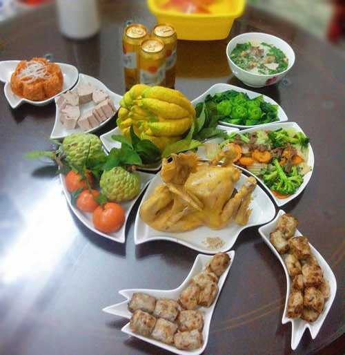 Những món ăn khác có thể biến tấu cho phù hợp với khẩu vị hoặc điều kiện gia đình nhưng những món này vẫn luôn được ưu tiên hàng đầu. Nếu ít có điều kiện hơn có thể thay thế gà bằng một miếng thịt heo luộc… Trong dân gian, người ta vẫn có thể có sự thay đổi này.