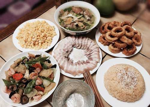 | Mâm cỗ nhiều món ăn mới của chị Lâm Anh Đào (Úc) |