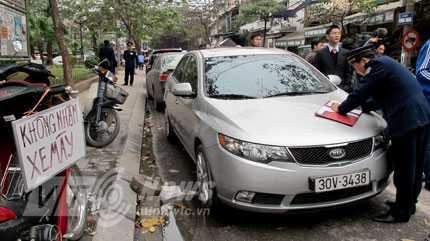 Tại điểm trông giữ xe ô tô trên phố Trần Quang Khải (đoạn trước Bảo tàng Lịch sử Việt Nam), khi lực lượng Thanh tra tới xử lý, nhân viên trông xe và các chủ xe đều bất ngờ.