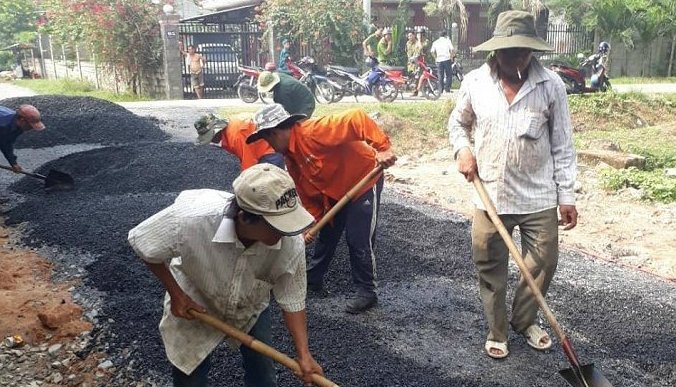 Được người dân đồng ý, ngày 4/5, ông Hoàng bỏ số tiền 200 triệu đồng mua vật liệu, thuê nhân công, máy móc triển khai làm đường.