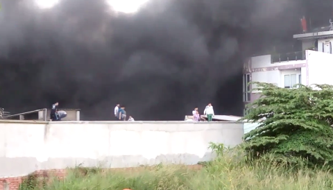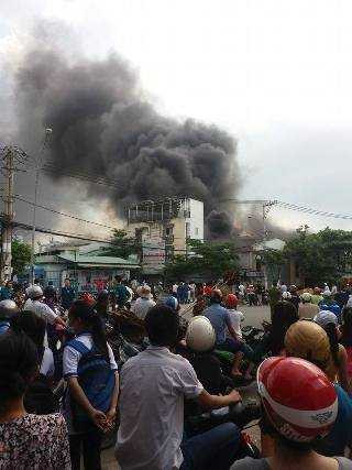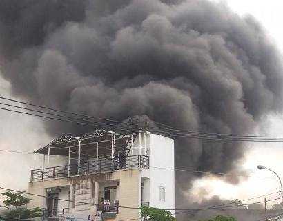 Chẳng bao lâu ngọn lửa đã bao trùm toàn bộ khu xưởng rồi nhanh chóng lan ra nhiều dãy trọ bên cạnh.