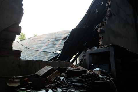 Tại hiện trường, đám cháy đã thiêu rụi toàn bộ 1000 m2 khu xưởng và những dãy trọ bên cạnh đều bị ảnh hưởng, nhiều vật dụng bên trong bị thiêu rụi, tường và mái nhà bị đổ sập.