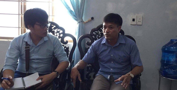 PV VTC News trao đổi với ông Trần Đình Dũng (phải) - Trưởng Phòng Nội vụ huyện Hướng Hóa. (Ảnh: QT)