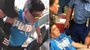 Trong đoạn video được The Sun đăng tải, cựu danh thủ Argentina được một vài người bạn dìu đi trên khán đài sau khi có biểu hiện khó thở, tụt huyết áp và không thể tự đi lại.