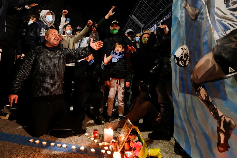 Các cổ động viên Napoli treo ảnh, thắp nến và đặt hoa tưởng niệm Maradona bên ngoài sân vận động San Paolo và trên khắp các con phố dẫn vào sân đấu này.