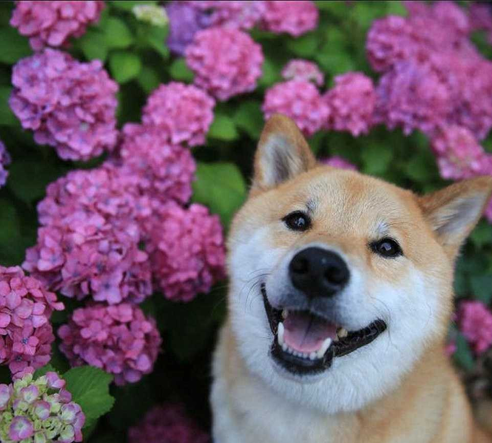 Khuôn mặt vui sướng của chú chó Nhật Bản
