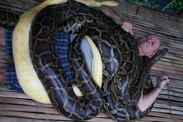 Nếu như đang gặp căng thẳng và có bản lĩnh, bạn có thể tìm đến vườn thú ở thành phố Cebu, Philippines để những chú trăn khổng lồ massage toàn thân cho mình.