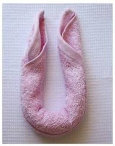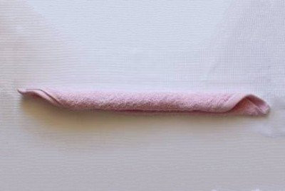 Bước 3: Gấp đôi chiếc khăn đã cuộn như hình dưới: