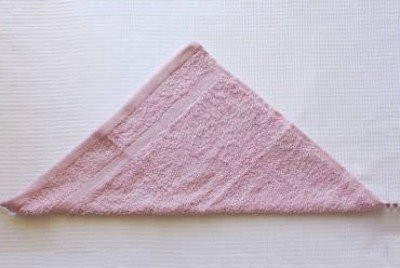 Bước 1: Trải chiếc khăn bông ra một mặt phẳng, gấp chéo chiếc khăn lại cho các đường viền trùng khớp vào nhau.