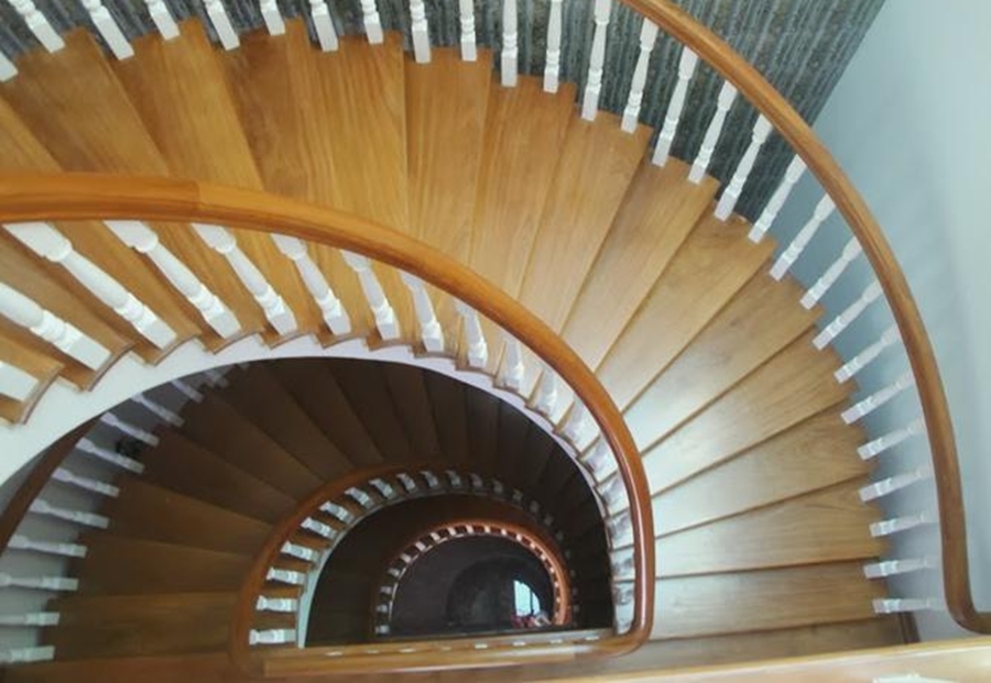 Mặt cầu thang bằng gỗ lim mang đến cảm giác khỏe khoắn, thường sử dụng trong kiến trúc truyền thống.