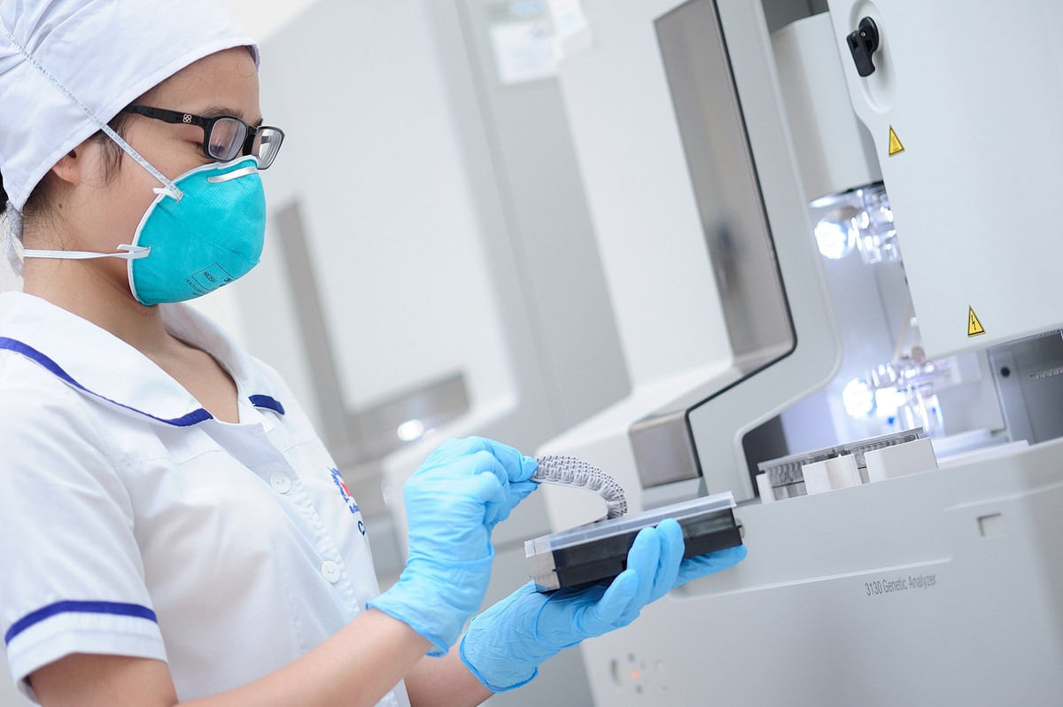 Nhân viên Trung tâm phân tích ADN và công nghệ di truyền xét nghiệm mẫu bệnh phẩm cho khách hàng. (Ảnh: CGAT)