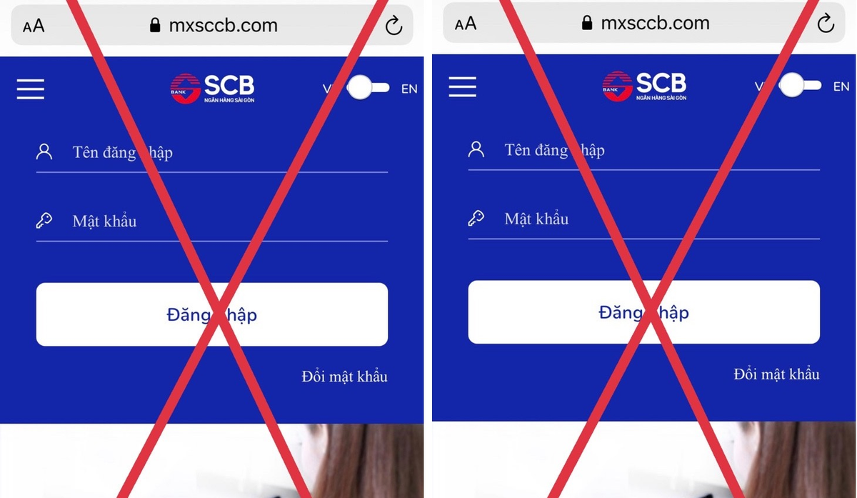 Hình ảnh đường link giả mạo ngân hàng SCB. (Ảnh: Công an cung cấp).