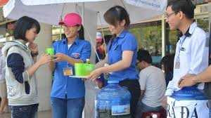 Người phụ nữ 46 tuổi, với chiếc xe máy cà tàng, đã vượt 12 km để đến các điểm thi để phát nước miễn phí cho sinh viên tình nguyện và người nhà sĩ tử.