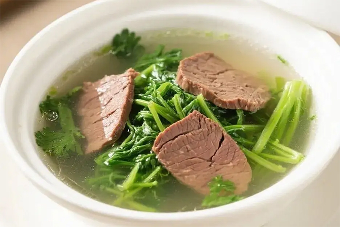 Canh cải bẹ thịt nạc sẽ giúp bồi bổ cơ thể, giải độc gan. (Ảnh: Sohu)