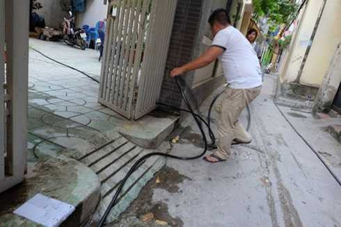 Trên trục đường Vũ Ngọc Phan (phường Láng Hạ, quận Đống Đa) nhiều hộ dân sinh hoạt khốn khổ vì hàng ngày phải ngóng nước sạch từng phút.