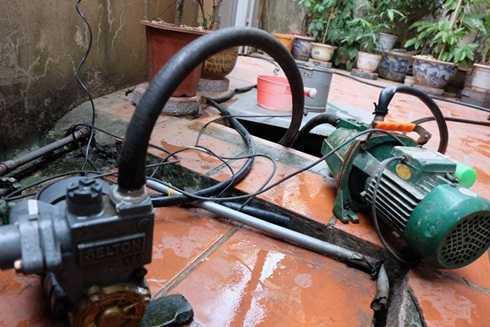 | Nhiều gia đình đầu tư thêm máy để bơm nước từ bể chứa |