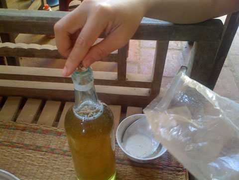 Để ngụy trang cho hỗn hợp nước đường trở thành mật ong thứ thiệt, sau khi để nguội, rót vào chai, ông H còn cà nhỏ một ít sáp ong cho lên cổ chai và đổ thêm vài giọt mật thật lên thành chai để có mùi thơm đặc trưng của mật ong, rồi nút lại bằng lá chuối.