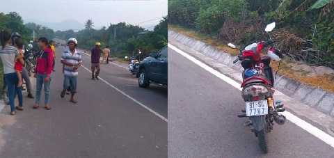 | Hiện trường xảy ra vụ việc và xe máy của hai chiến sỹ công an |