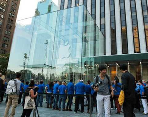 Tại một Apple Store trên đại lộ Fifth Avenue tại Manhattan, Mỹ. Trước giờ iPhone 5S chính thức được bán ra, nơi ấy có sự xuất hiện của các nhân viên cảnh sát, các phóng viên tin tức truyền hình, dòng người đủ các thành phần tại New York.