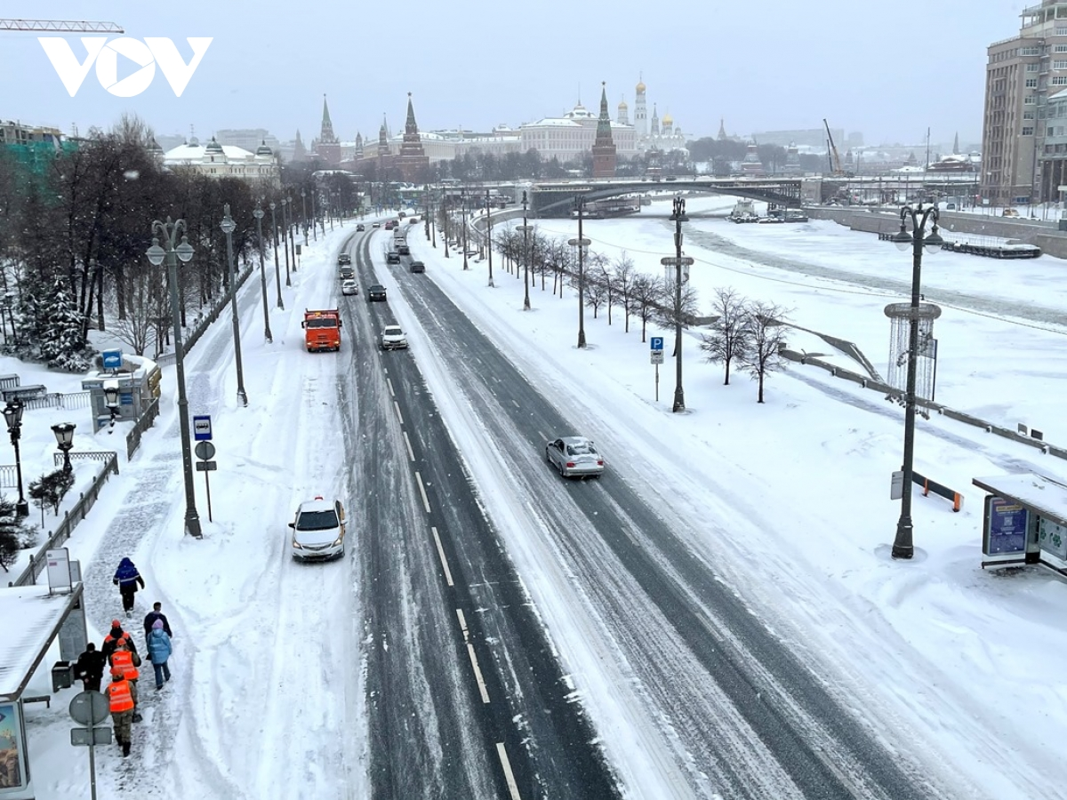 Đường phố Matxcơva ngập trong tuyết.