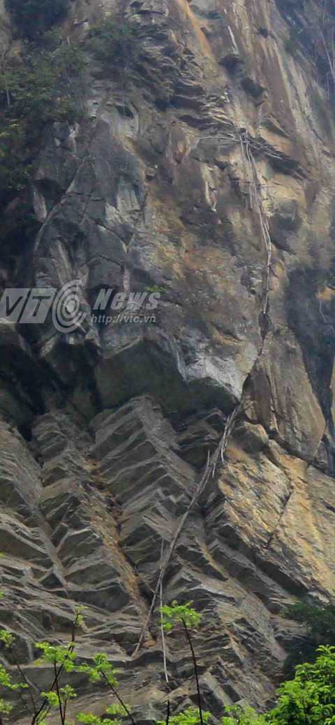 Đứng dưới chân núi, căng mắt nhìn cũng không rõ hình những chiếc than tre. Tôi phải dùng máy ảnh, zoom hết cỡ, chụp vách đá có những cái hang, rồi phóng to tấm ảnh trên máy tính, mới nhìn thấy hệ thống thang tre loằng ngoằng trên vách đá, nhỏ như cây tăm. Tôi trộm nghĩ, các nhà leo núi chuyên nghiệp nhìn những vách đá này cũng phải ớn lạnh.
