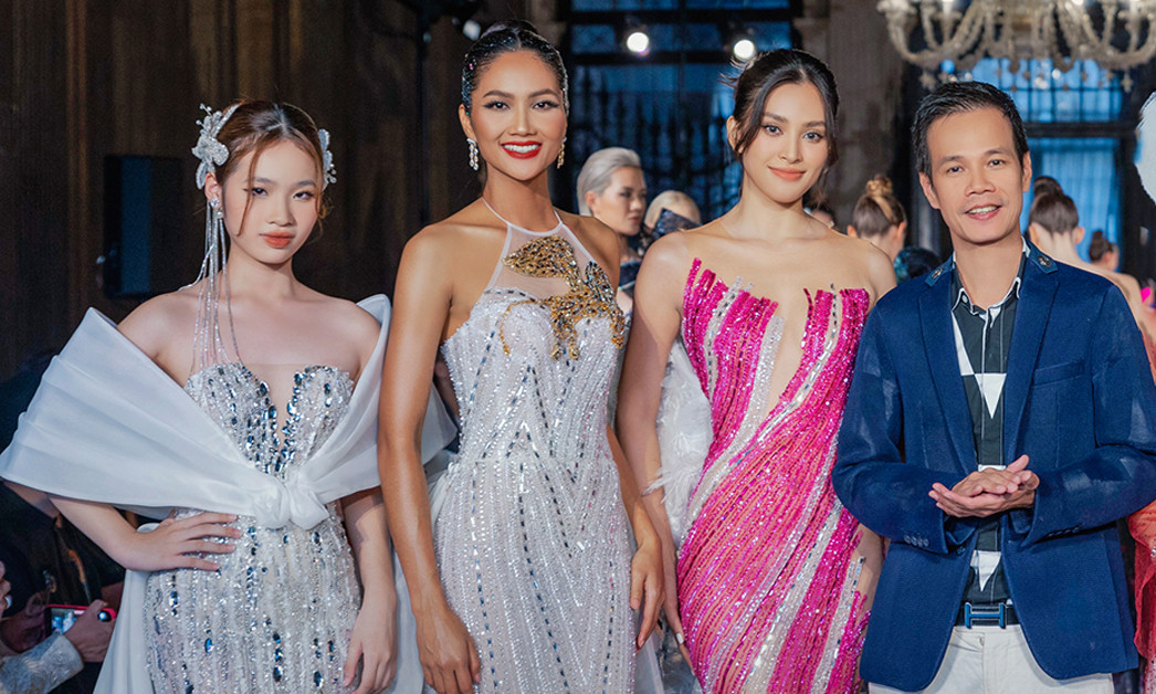 H'Hen Niê và Tiểu Vy cũng xuất hiện tại show diễn khi đảm nhận những vị trí quan trọng. Cả hai lộng lẫy trong những chiếc váy dạ hội ôm sát.