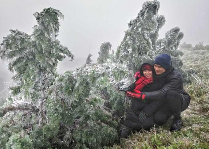 Mẫu Sơn lạnh dưới 0°C, du khách thích thú chụp ảnh với băng