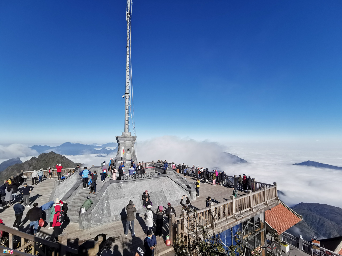 Sau khi xuất hiện sương muối, đỉnh Fansipan có nắng, trời quang mây lúc 9h sáng 5/12. Ảnh: N.T.