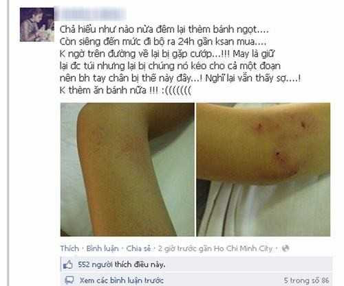 Chuyện bị cướp và kéo lê trên đường được Andrea chia sẻ cụ thể, tỉ mỉ trên trang cá nhân. |