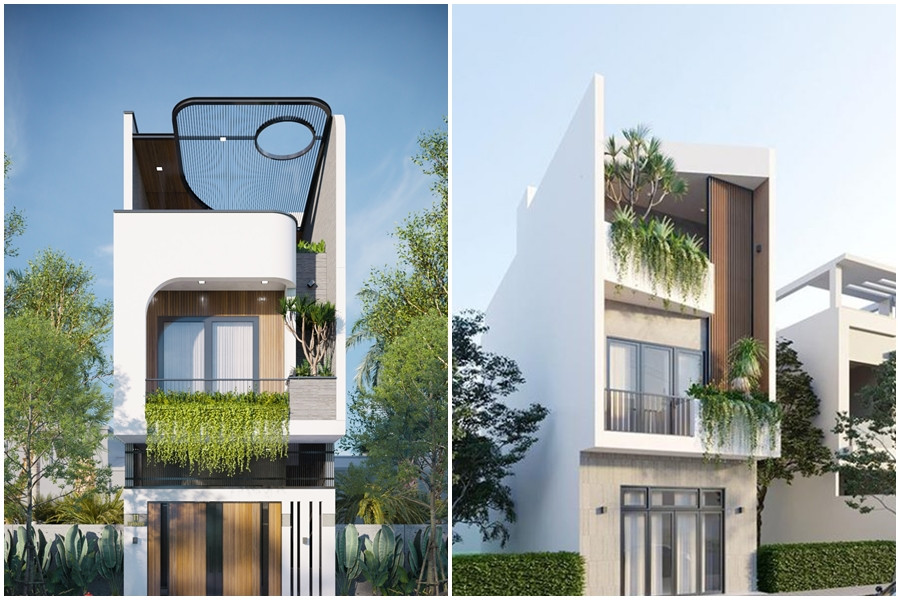 Những nét chấm phá đường cong và cây xanh ở mặt tiền cũng là điểm nhấn trong mẫu thiết kế này.
