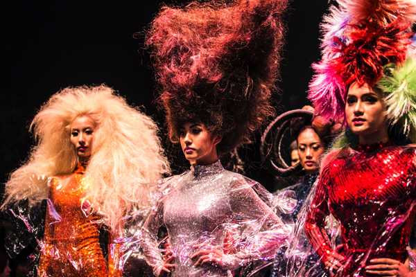 | Ba nhà tạo mẫu tóc đến từ Học viện Allilon, London thể hiện kỹ thuật cắt, tạo kiểu trên sân khấu DHS 2015 qua bộ sưu tập "Reverie - Bức tranh không tưởng" |
