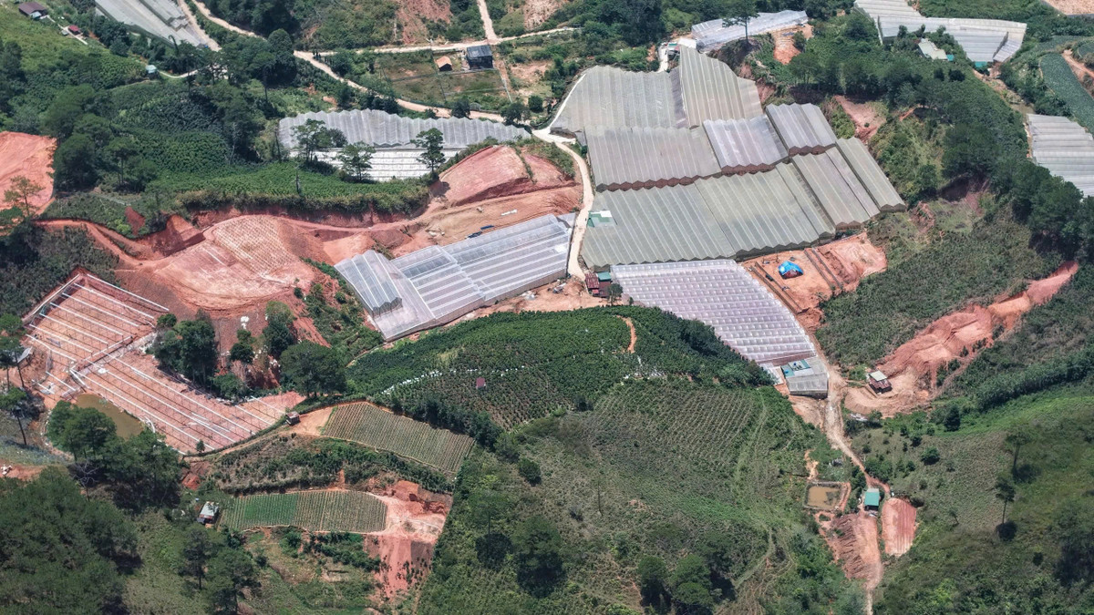 Trong khi Đà Lạt đã đặt mục tiêu đến năm 2030 giảm dần nhà kính nông nghiệp trong nội ô TP Đà Lạt và khống chế nhà kính không quá 20% đất nông nghiệp thì ở xã Lát, huyện Lạc Dương - cửa ngõ phía Đông của Đà Lạt, đang diễn ra tình trạng san gạt đất, làm nhà kính tràn lan.