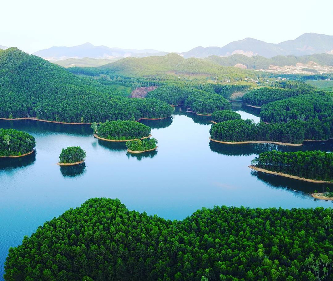 Hồ Hòa Trung được điểm tô bởi nhiều ốc đảo xanh mướt với đủ kích cỡ. (Ảnh: di.rong.danang)