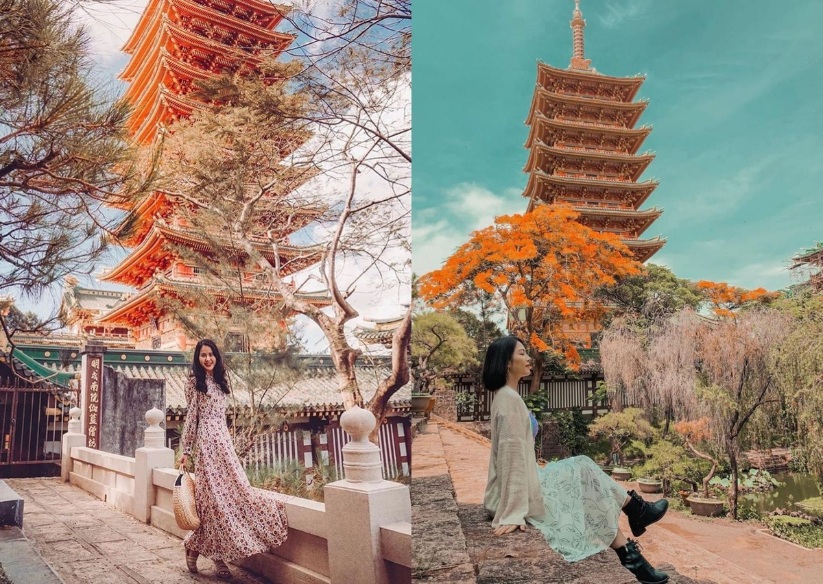 Đứng từ xa, dưới bầu trời xanh trong cùng những tia nắng vàng chiếu rọi, tòa bảo tháp lung linh hiện ra như biểu tượng cho sự uy nghiêm, tôn kính. Bất cứ vị khách nào đặt chân đến đây cũng đều bị ấn tượng bởi lối kiến trúc độc đáo này và cứ ngỡ như đang lạc bước vào một ngôi đền nào đó của xứ sở mặt trời mọc Nhật Bản.