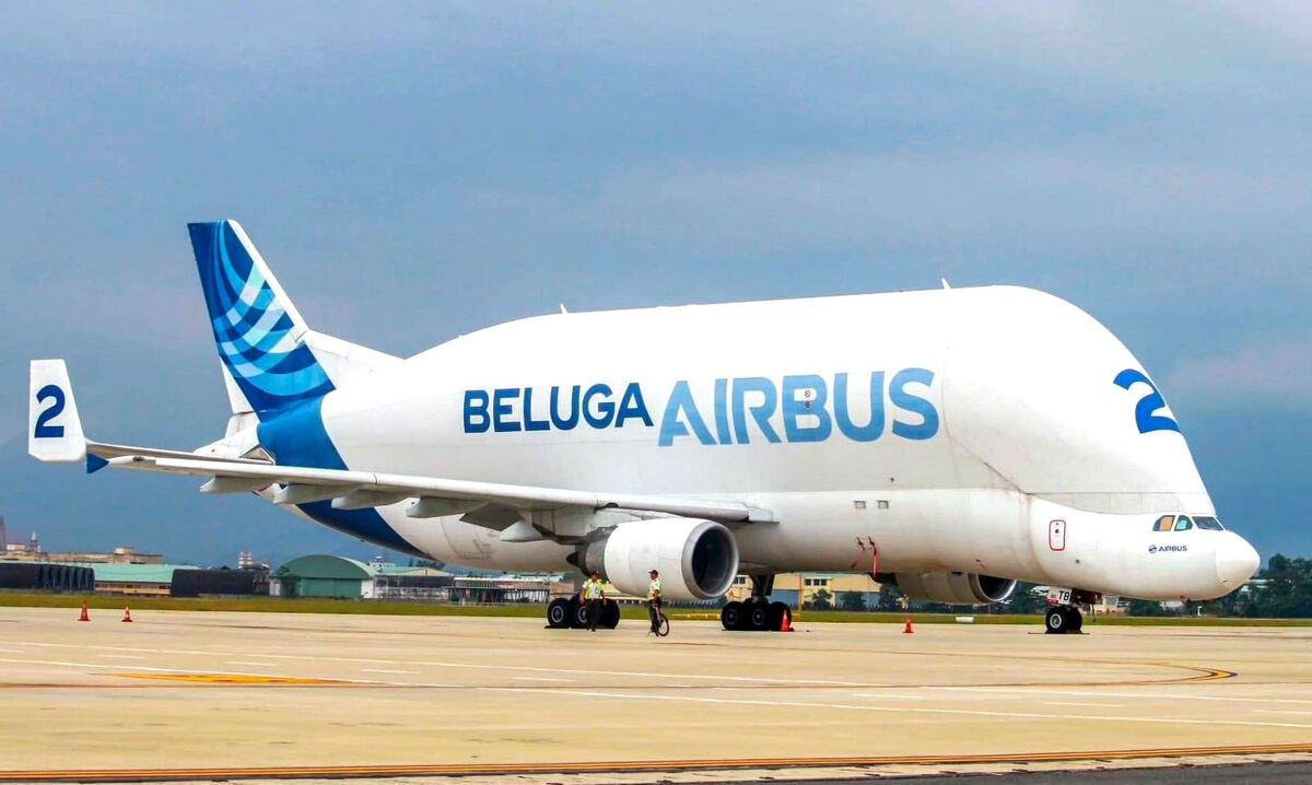 Phần đầu của chiếc Airbus A300-600ST giống đầu cá voi. (Ảnh: L.H.S)