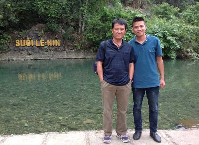Đại tá Ngô Quang Trung và trung uý Lê Đức Lam trong một chuyến tham quan. Ảnh tư liệu. |
