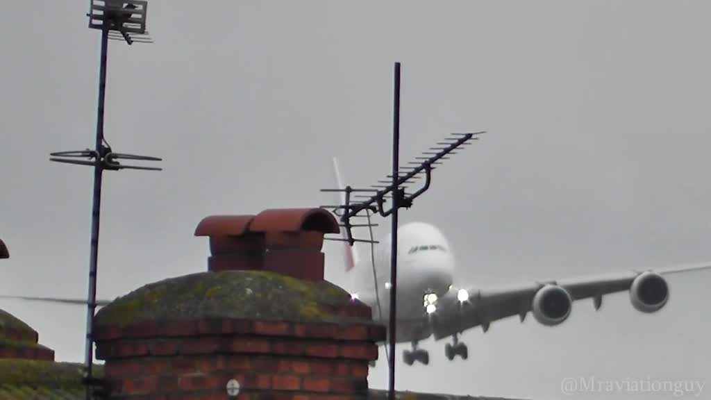 24/09/2016 18:30:00 +07:00Chiếc Airbus A380 khổng lồ của hãng hàng không Emirates chao đảo dữ dội khi thực hiện kỹ thuật hạ cánh kiểu "con cua" (di chuyển ngang chiều gió) xuống sân bay Manchester (Anh).