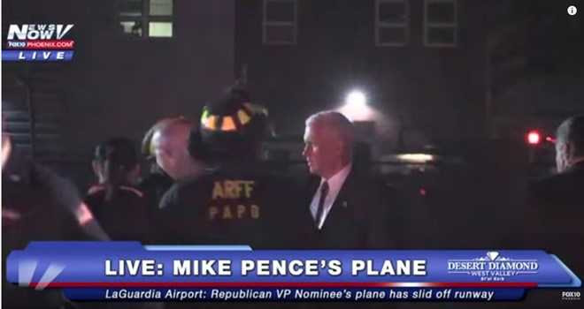 Các hình ảnh trực tiếp trên truyền hình cho thấy ông Pence đang nói chuyện với cảnh sát và một vài quan chức khác gần chiếc máy bay.