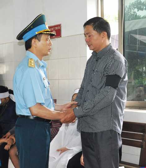 Trung tướng Lê Huy Vịnh, Tư lệnh Quân chủng Phòng không Không quân viếng Thiếu úy Trung.